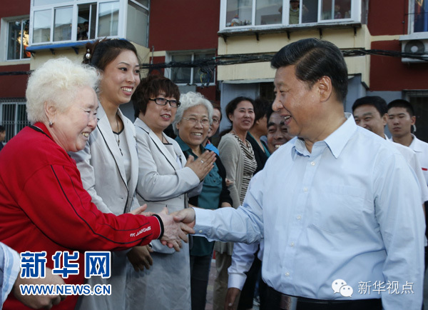 習近平在沈陽市沈河區大南街道多福社區看望居民。新華社記者鞠鵬 攝