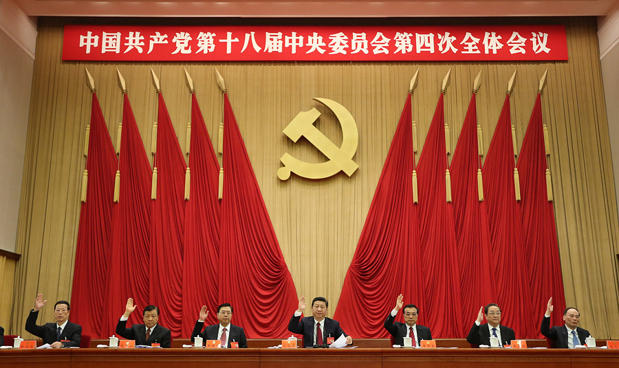 據英國《金融時報》網站10月23日報道,中共十一屆三中全會后,中共就汲取文化大革命的慘痛教訓,逐漸形成并提出了“有法可依、有法必依、執法必嚴、違法必究”的治國命題。這十六字方針其實包含了“依法治國”的基本精神?! ≈泄矊⒔陙硪婪ㄖ螄奶剿?,直接上升為此次中央全會的主題。這次全會通過《決定》,會成為全黨的意志,也將迅速成為指導政府和司法機關行為,引導全國人民思維和行為模式的國家意志。