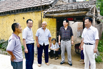 圖為陳新寧(左二)在司馬鎮包村工作期間走村入戶了解民意。