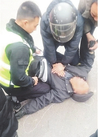 ????1月28日,農歷大年初一,9時20分左右,邢臺市天一城交通崗東口50米處,一名騎助力摩托的老年人突然摔倒,在崗執勤民警確定不是交通事故后,馬上撥打120并聯系老人家屬。隨后,交警跪在冰冷的馬路上迅速施救,這一幕被熱心市民發到網上,引來網友紛紛點贊。老人也很快被送往醫院接受治療。(記者王永晨網友供圖)
