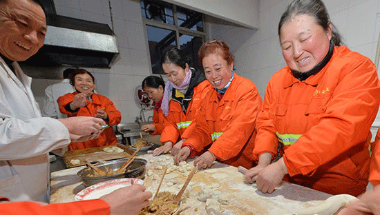 ????農歷大年初一,1月28日7時,石家莊市長安區衛生隊,環衛工人們下班后一起包餃子過大年。為感謝一年來環衛工人為市容環境做出的貢獻,表達對環衛工人的關心和問候,石家莊市城管委連續6年組織安排,讓春節期間堅守工作崗位的環衛工人都吃到熱乎乎的過年餃子,讓他們感受到家人般的溫暖。河北日報記者田明攝