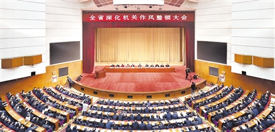 2月3日,省委、省政府召開全省深化機關作風整頓大會。圖為大會會場。 記者 郭 昭攝