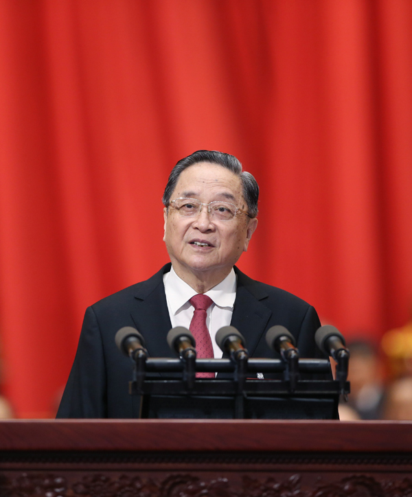 ????俞正聲代表政協第十二屆全國委員會常務委員會作工作報告。