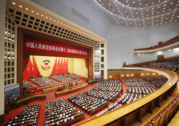 ????3月3日,中國人民政治協商會議第十二屆全國委員會第五次會議在北京人民大會堂開幕。新華社記者 丁海濤 攝