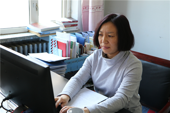 張北縣紀(jì)委黨風(fēng)政風(fēng)監(jiān)督室主任呂艷青正在起草工作材料。