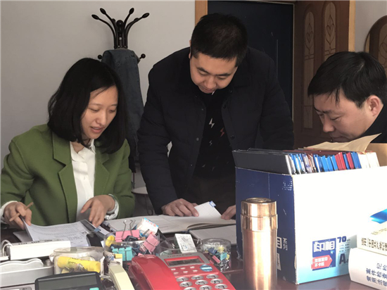 興隆縣半壁山鎮(zhèn)紀(jì)委書記孟季秋(左一)正在工作。