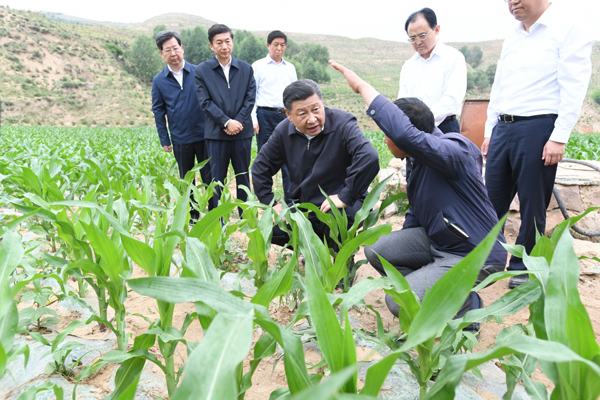 ????這是6月21日下午,習近平在忻州市岢嵐縣趙家洼村玉米地察看抗旱保墑措施。(新華社記者 李學仁 攝)