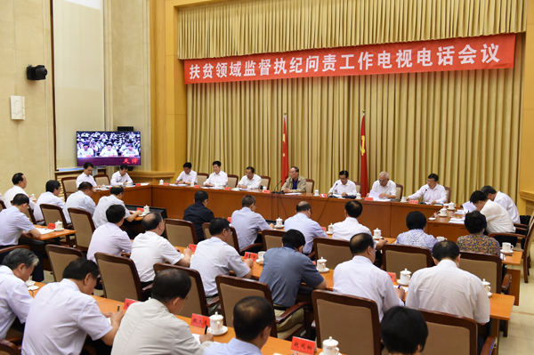 ????中共中央政治局常委、中央紀(jì)委書記王岐山3日出席扶貧領(lǐng)域監(jiān)督執(zhí)紀(jì)問責(zé)工作電視電話會并講話。(中央紀(jì)委監(jiān)察部網(wǎng)站 徐夢龍 攝)