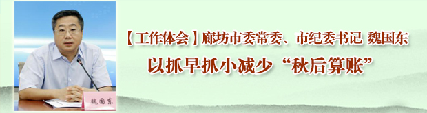????今年兩個專項工作開展前期,針對有的地方和牽頭單位磨磨蹭蹭、推而不動的情況,6月6日,魏國東對工作開展不力的香河縣、文安縣、廊坊開發(fā)區(qū)、市編辦、市委辦公室、市環(huán)保局6個地方和單位一把手逐個“過堂”約談。6月21日,魏國東再次對兩個專項工作排名靠后的大廠、大城、廣陽3個縣區(qū)的紀委書記進行個別約談。