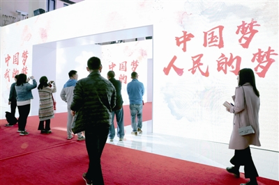 ????實現中華民族偉大復興是近代以來中華民族最偉大的夢想,誰能夠承擔起這個歷史使命,誰就能贏得中國人民的衷心擁護,成為中華民族的主心骨,使中國人民從精神上由被動轉為主動。圖為觀眾在北京“砥礪奮進的五年”大型成就展上參觀。(資料圖片)