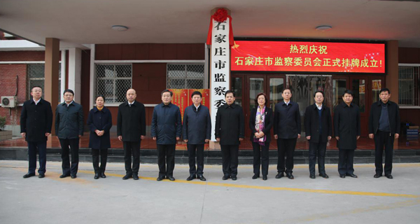 ????2月9日上午,石家莊市監(jiān)察委員會正式掛牌成立。省委常委、市委書記邢國輝與省紀(jì)委常委,市委常委、市紀(jì)委書記、市監(jiān)察委員會主任張明利共同揭牌,并看望市紀(jì)委監(jiān)委機(jī)關(guān)干部。