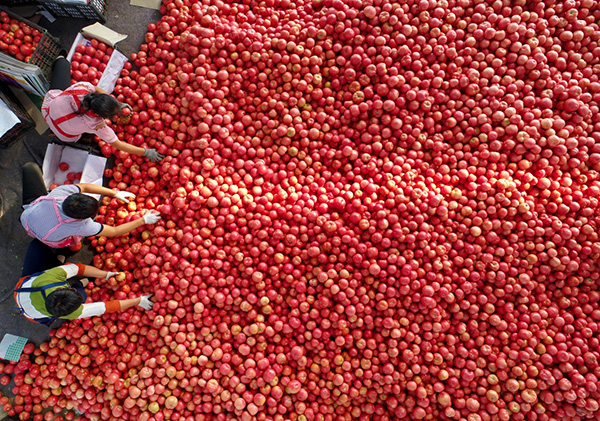 ????農(nóng)民在河北省灤縣小馬莊鎮(zhèn)北京二商集團蔬菜基地內(nèi)將采摘的西紅柿裝箱(2017年9月21日攝)。灤縣加快新型農(nóng)業(yè)經(jīng)營體系建設,瞄準服務京津市場菜籃子,引導扶持農(nóng)民種植綠色無公害蔬菜,使其規(guī)模化、標準化、產(chǎn)業(yè)集群化發(fā)展。(新華社記者 牟宇 攝)