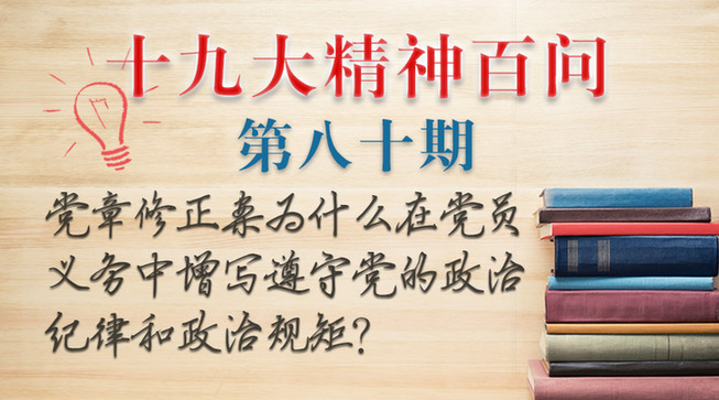黨的十九大黨章修正案在黨員義務中增寫自覺遵守黨的政治紀律和政治規矩的內容,這對于加強黨的政治建設、思想建設、組織建設、作風建設、紀律建設以及制度建設、反腐敗斗爭,維護黨的團結統一,確保全黨統一意志、統一行動、步調一致具有重要意義。