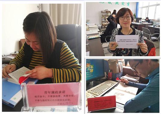 ????在“五四”青年節(jié)來(lái)臨之際,唐山市開(kāi)平區(qū)紀(jì)委監(jiān)委聯(lián)合團(tuán)區(qū)委在全區(qū)青年干部中開(kāi)展了一句話(huà)廉政承諾活動(dòng),旨在提高青年干部的黨風(fēng)廉政意識(shí)和拒腐防變能力。