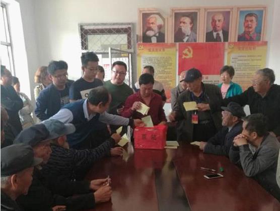 農(nóng)村紀(jì)檢委員(右四佩戴工作證者)監(jiān)督村兩委換屆投票情況。