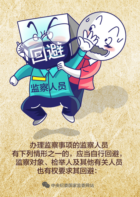 ????第五十八條 辦理監察事項的監察人員有下列情形之一的,應當自行回避,監察對象、檢舉人及其他有關人員也有權要求其回避: