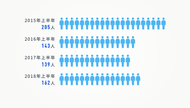 2015年以來,上半年廳局級干部落馬數量走勢圖