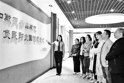 ????蔚縣紀(jì)委監(jiān)委聯(lián)合縣檢察院依托當(dāng)?shù)亍扒宄踔背贾凇蔽合髽泄示樱蛟烊惺讉€(gè)置身于古建筑中的廉政文化教育基地。該基地在講述魏象樞清廉史的同時(shí),也吸納了近年來各類警示案例,引導(dǎo)黨員干部時(shí)刻敲響警鐘,筑牢拒腐防變思想防線。據(jù)統(tǒng)計(jì),每年到此參加警示教育的黨員干部近萬人次。圖為黨員干部在基地參觀學(xué)習(xí)。通訊員 張巍耀 記者 李艷紅攝