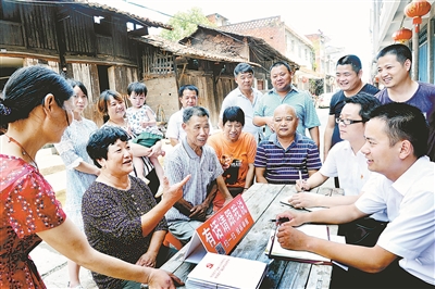 ????江西省玉山縣紀委監委派出3個督查組深入全縣各鄉鎮、村組,瞄準違規公款吃喝送禮、利用村級工程建設項目和扶貧款物發放等突出問題開展監督檢查,推動全面從嚴治黨向基層延伸。圖為督查組在巖瑞鎮包溪村向當地群眾了解情況。(資料圖片)