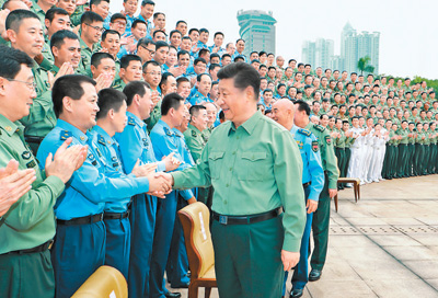 ????10月25日上午,中共中央總書記、國家主席、中央軍委主席習近平到南部戰區視察調研。這是習近平親切接見駐廣東部隊副師職以上領導干部。新華社記者 李 剛攝