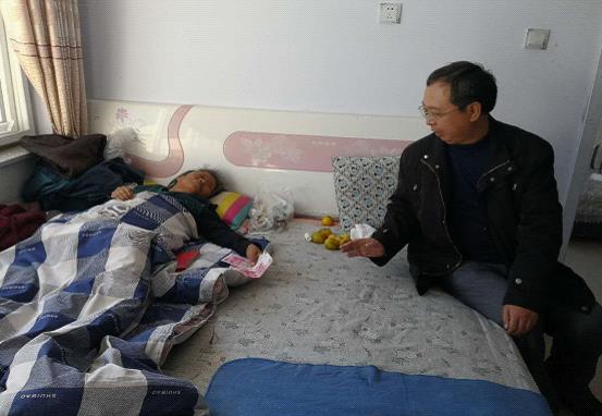 ????黨員代表到老掌溝村看望因病致貧困難戶。