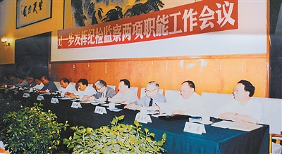 ????1993年,我們黨首次提出,反腐敗斗爭形勢是嚴峻的,要堅決制止腐敗現象蔓延的勢頭。基于這一判斷,黨中央決定中央紀委和監察部合署辦公。圖為1994年8月,中央紀委、監察部召開進一步發揮紀檢監察兩項職能工作會議。