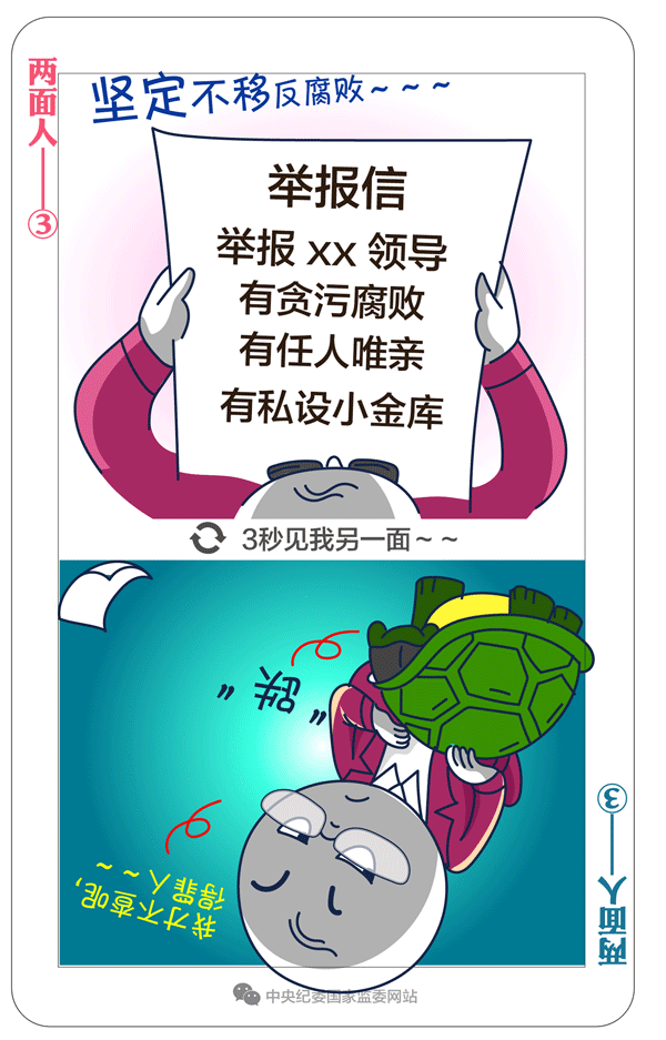 ????習(xí)近平總書記多次強(qiáng)調(diào):“堅(jiān)決反對(duì)搞兩面派、做兩面人。”大量案件表明,黨內(nèi)有一些人在這方面問題很突出。我們要給政治上蛻變的兩面人畫個(gè)像,擺擺他們的一些表現(xiàn)。今天推出第三期:“有的口頭上表態(tài)堅(jiān)定不移反腐敗,背地里對(duì)涉及領(lǐng)導(dǎo)干部的問題線索不追究、不報(bào)告。”