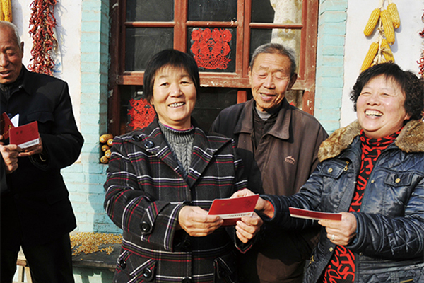 2009年12月,山西省萬榮縣西賈村,新農保國家試點啟動,60周歲以上符合領取條件的村民第一次領到新型農村社會養老保險基礎養老金