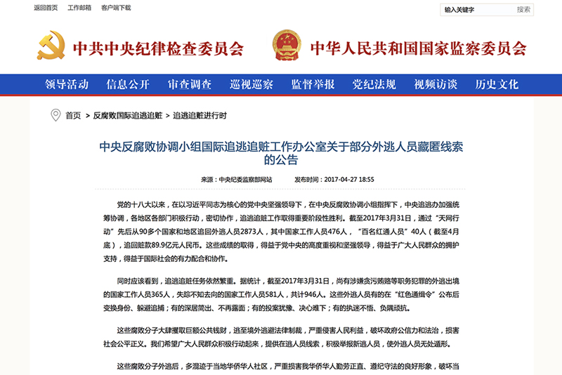 ????3.第一次開通反腐敗國際追逃追贓專欄,接受海內外線索舉報