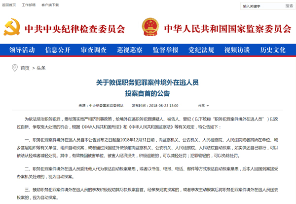 ????8.第一次發布敦促自首公告,向外逃人員“喊話”