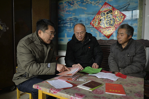 圖為廣宗縣紀委監委工作人員深入鹽場村貧困戶家中核查扶貧幫扶措施落實情況。