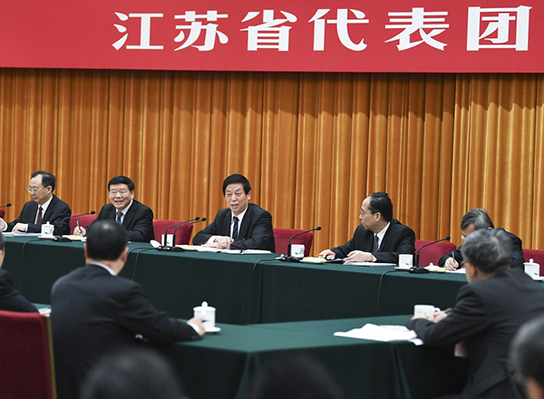 ????3月10日,中共中央政治局常委、全國人大常委會委員長栗戰書參加十三屆全國人大二次會議江蘇代表團的審議。新華社記者 謝環馳 攝