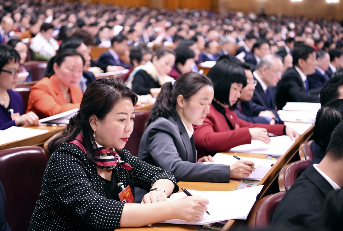????3月12日,十三屆全國人大二次會議在北京人民大會堂舉行第三次全體會議。這是代表在認真聽會。新華社記者 燕雁 攝