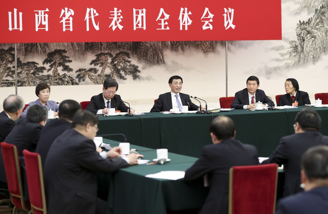 3月12日,中共中央政治局常委、中央書記處書記王滬寧參加十三屆全國人大二次會議山西代表團的審議。 新華社記者 丁海濤 攝