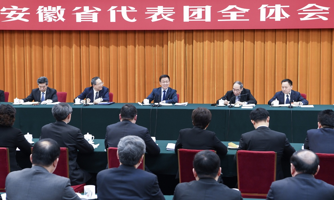 3月12日,中共中央政治局常委、國務院副總理韓正參加十三屆全國人大二次會議安徽代表團的審議。 新華社記者 張領 攝
