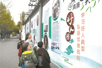 近年來,浙江省湖州市吳興區(qū)飛英街道辦事處著力打造“清廉”主題街區(qū),圖為小學生在觀看好人榜事跡介紹。(新華社資料圖片)