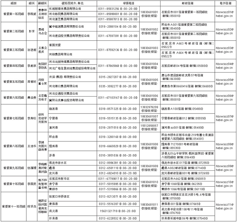 ????本輪巡視將在被巡視地方(單位)工作兩個月左右。巡視組設專門值班電話和信箱,主要受理反映被巡視黨組織領導班子及其成員、下一級黨組織領導班子主要負責人和重要崗位領導干部問題的來信來電來訪。