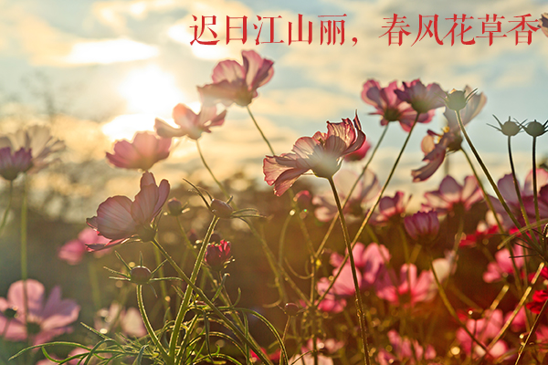 ????這是杜甫居于成都草堂時所寫的一首寫景詩。詩人用平實的語言勾勒出一幅春意盎然的美景?!斑t日江山麗,春風花草香”,“遲日”即春日,語出《詩經·豳風·七月》中“春日遲遲”,在如此燦爛的陽光照耀下,處處惠風和暢、百花競放、風送花香,實在讓人歡欣愉悅。