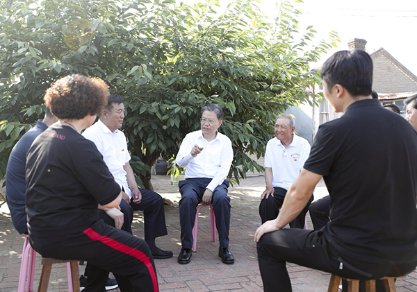 6月19日至21日,中共中央政治局常委、中央紀(jì)委書(shū)記趙樂(lè)際到遼寧省調(diào)研。這是6月19日,趙樂(lè)際在遼寧省海城市朱家村與村干部和村民代表面對(duì)面交流。新華社記者 丁海濤 攝