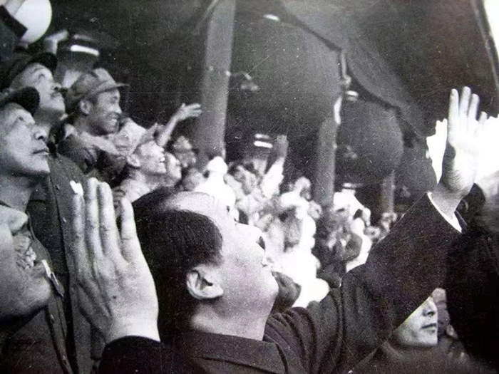 70年過去了,88歲的康莊仍然清晰地記得,當毛澤東向世界莊嚴宣告“中華人民共和國中央人民政府成立了”,全場30多萬人不由自主淚流滿面,不少女同志哭出聲來。人們大聲歡呼,嗓子喊啞了,把手里的鮮花和自己的帽子都拋向天空,全場一片歡騰,許多人的手拍腫了。