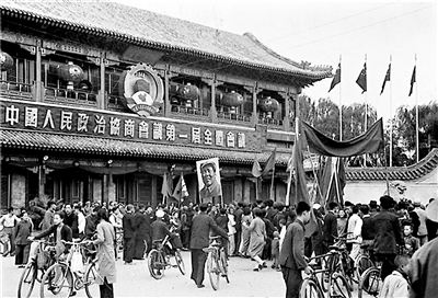 1949年9月21日至30日,中國人民政治協商會議第一屆全體會議隆重舉行。圖為中南海新華門前慶祝會議召開的群眾隊伍。