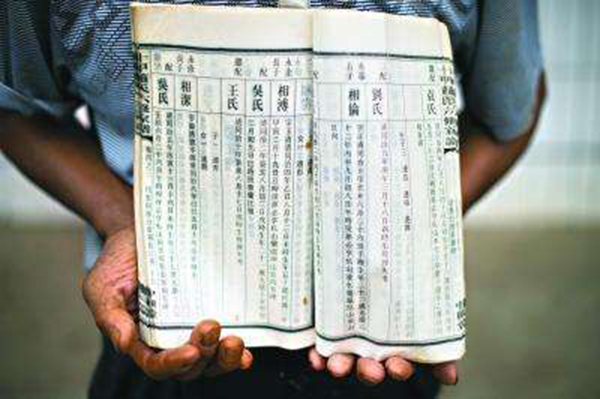 蕭氏的后人展示蕭家家譜,“連祜”即為蕭石月(任勇 攝)