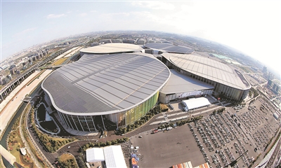 下圖:2018年11月5日,上海國家會展中心,首屆中國國際進口博覽會開幕。上海國家會展中心,一片巨型的“四葉草”,仿佛一個地球村,將參展的各國緊密聯系在一起。(資料圖片)