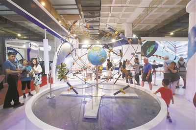 2017年6月9日,參觀者在北京科博會上觀看北斗導航衛星星座。(資料圖片)