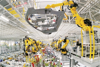 距離當年泊頭火柴廠40公里處的河北滄州經濟開發區,北京現代滄州工廠智能車間內,299臺機器人揮舞著靈活的機械手臂搬運、焊接、碼件,只需51秒就能組裝下線一輛汽車。(記者 姜永斌)