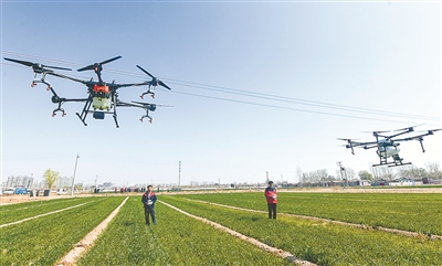 隨著一系列鄉(xiāng)村振興戰(zhàn)略舉措的扎實推進,中國經(jīng)濟社會發(fā)展的根基不斷夯實。這是2019年4月1日,在河北省故城縣鄭口鎮(zhèn)果子口村化肥農(nóng)藥減量增效示范基地,工作人員操作無人機給小麥施肥。新華社記者 李曉果 攝