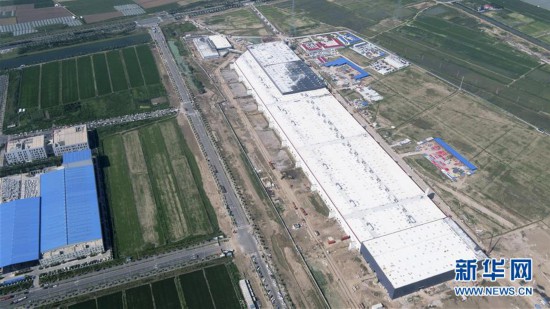 7月23日無人機拍攝的位于上海臨港產業區的特斯拉上海超級工廠。 新華社記者 丁汀 攝