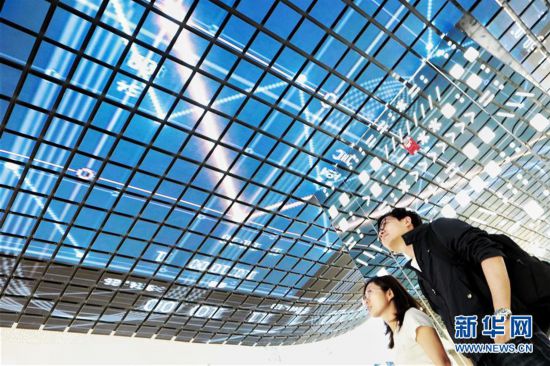 5月22日,參觀者在國家大數據(貴州)綜合試驗區展示中心內參觀。 新華社記者 歐東衢 攝