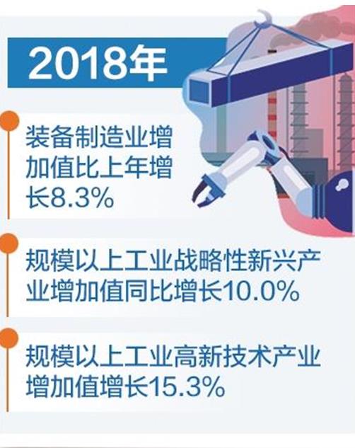 省統計局相關負責人表示,通過堅定不移推進高質量發展,我省新動能加快成長。2018年,全省規模以上工業戰略性新興產業企業達2240家,增加值占規模以上工業比重為12.3%。2018年規模以上工業戰略性新興產業增加值同比增長10.0%,高于規模以上工業增速4.8個百分點。2018年,規模以上工業高新技術產業增加值增長15.3%,其中高端技術裝備制造領域、新材料領域和生物領域分別增長23.1%、17.7%和16.0%,高新技術產業增加值占規模以上工業比重達到19.5%。