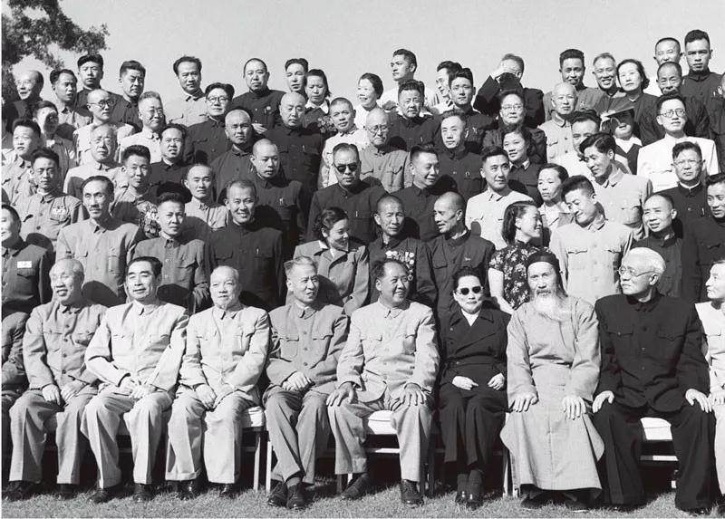 中華人民共和國(guó)第一屆全國(guó)人民代表大會(huì)第一次會(huì)議全體代表于1954年9月21日合影。毛澤東主席和代表們?cè)谝黄稹G芭抛笃穑憾匚洹⒅芏鱽?lái)、李濟(jì)深、劉少奇、毛澤東、宋慶齡、張瀾、林伯渠。新華社稿 侯波/攝